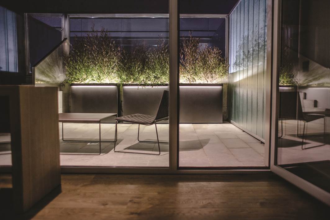 En las terrazas de las habitaciones requerían focos de luz para iluminar el espacio exterior, gracias al servicio Hobby Light unido a la colección Urban, conseguimos resaltar la belleza de las plantas y del espacio durante la noche, transmitiendo así un ambiente relajado y tranquilo.